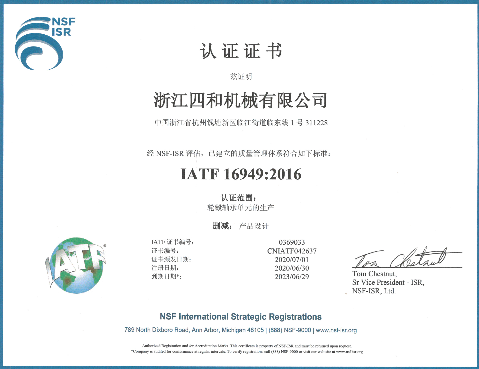 浙江四和機械有限公司成立于2004年,坐落于浙江省杭州錢塘新區(qū)臨江街道臨東線1號。汽車輪轂軸承單元是公司重點開發(fā)生產(chǎn)的主導(dǎo)產(chǎn)品之一,該產(chǎn)品具有集成化、單元化和小型輕量化的特點,被廣泛應(yīng)用于各類轎車、商務(wù)車以及輕型卡車的前、后輪轂內(nèi),有很高的技術(shù)含量及廣闊的市場前景。公司現(xiàn)在已經(jīng)開發(fā)生產(chǎn)第一代、第二代、第三代汽車輪轂軸承單元共1500多個品種,具有年生產(chǎn)200萬套汽車輪轂單元的生產(chǎn)能力。